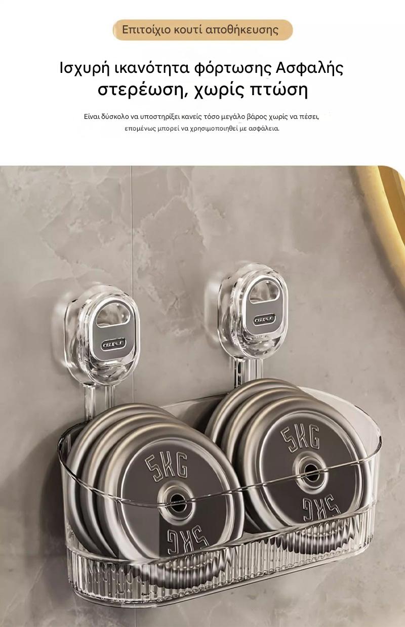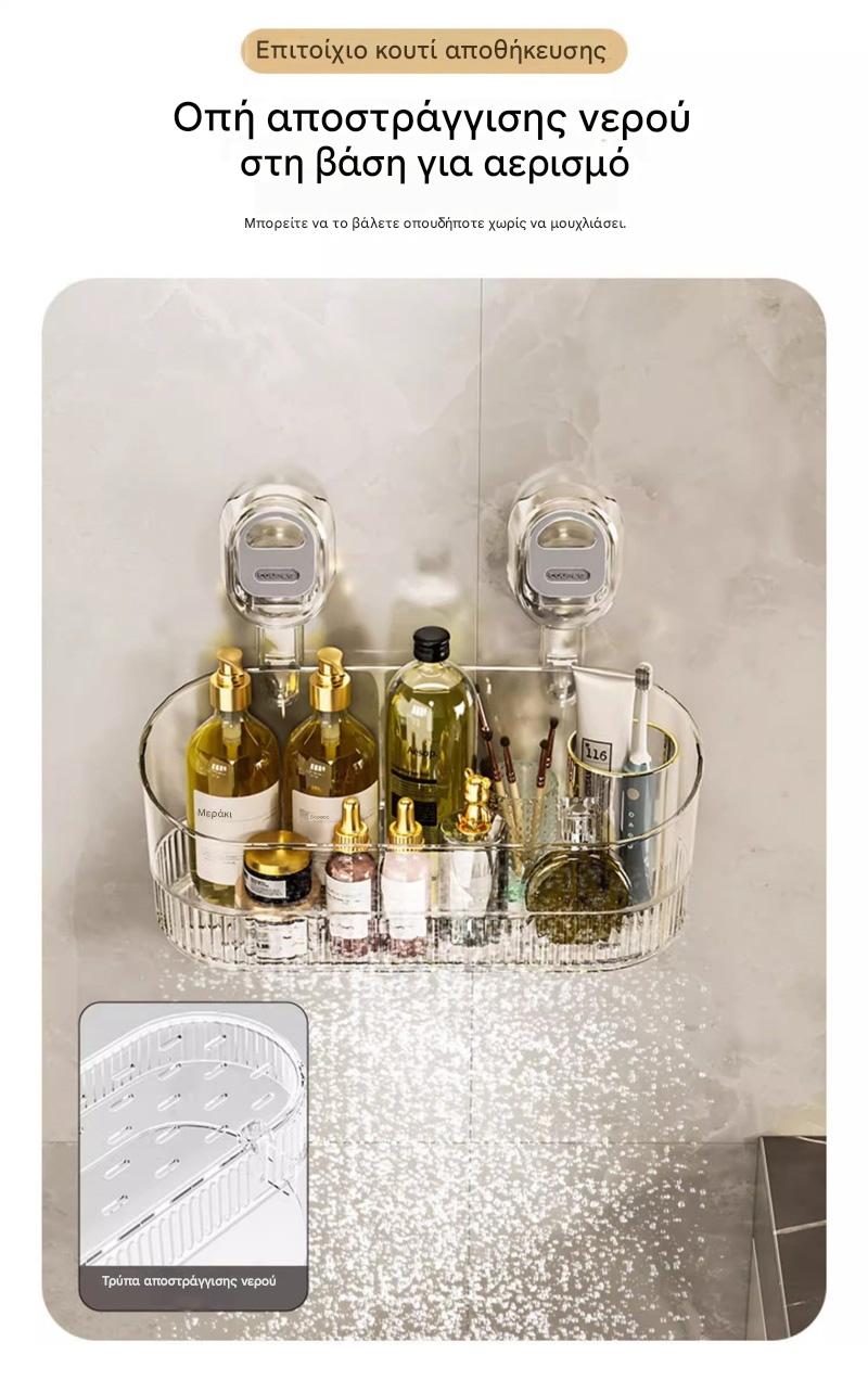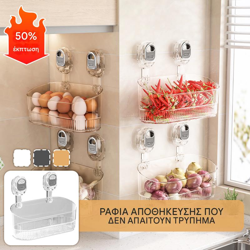 🍽️🧺 Ράφι αποθήκευσης με βεντούζα χωρίς τρύπημα, αποστραγγιστήρι τοίχου για κουζίνα και μπάνιο