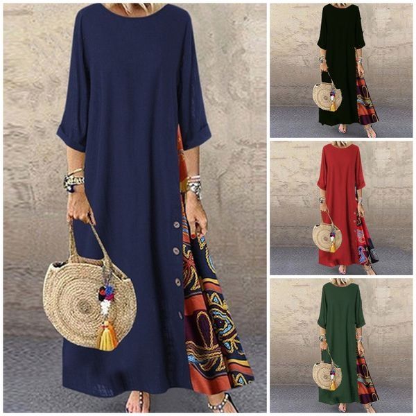💖🍂【M-5XL】Γυναικείο Φόρεμα με Ρετρό Στάμπα και Μεσαίο Μανίκι