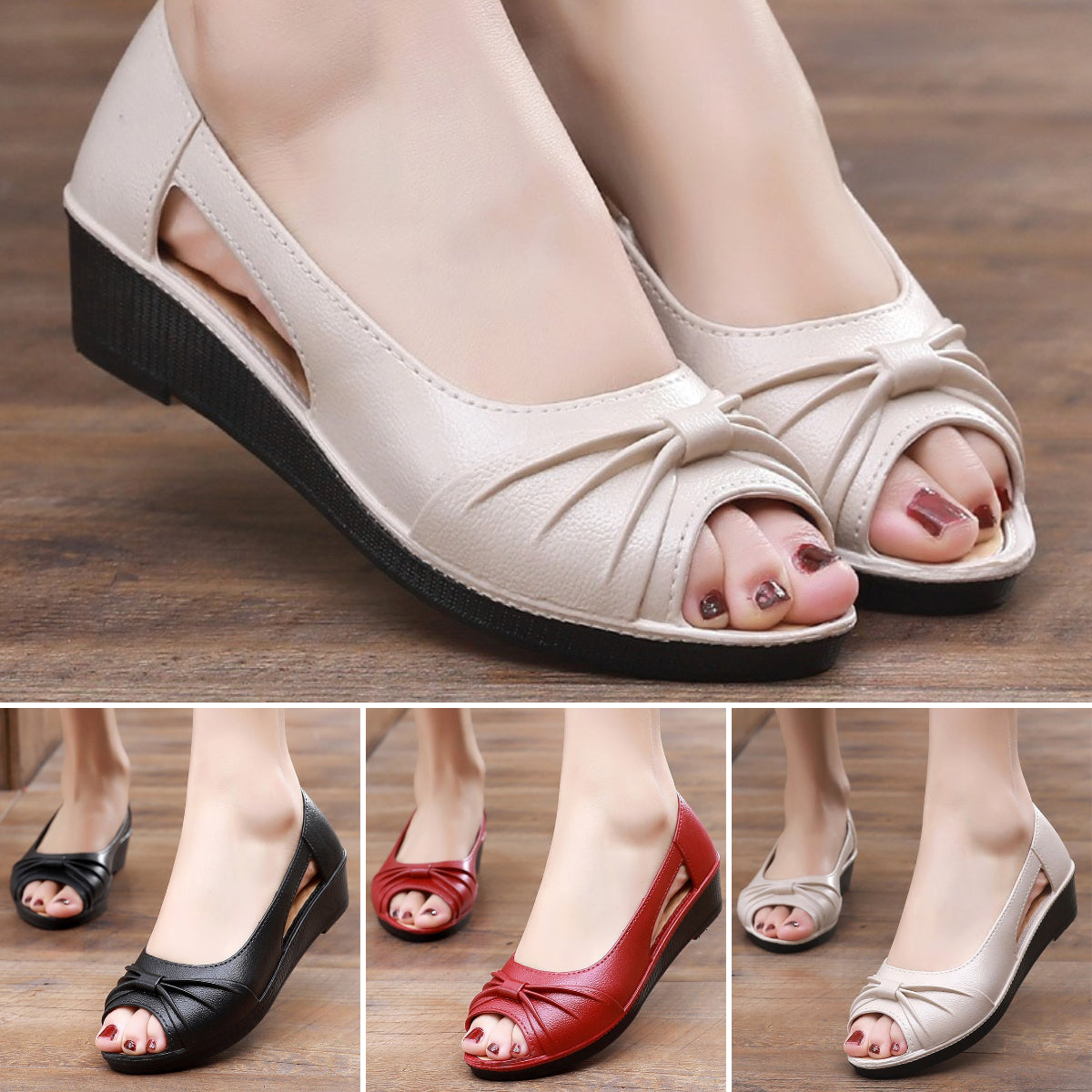 🌼【36-40】 Stylowe sandały damskie w jednolitym kolorze, miękka podeszwa na platformie, buty z wycięciami, otwarty palec u nogi, buty w kształcie kostki na lato