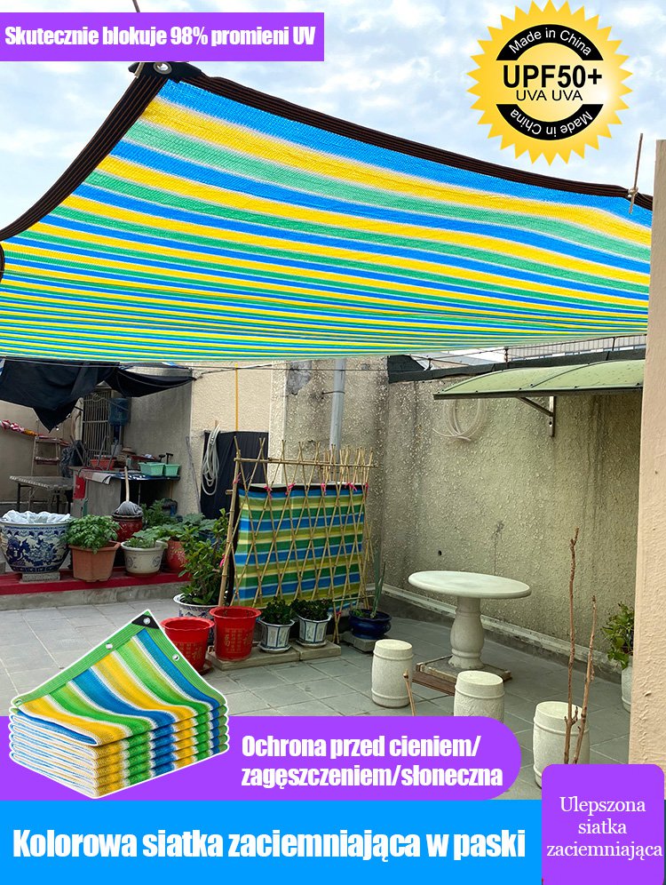 ⛅Plasă de umbră îngroșată cu dungi curcubeu