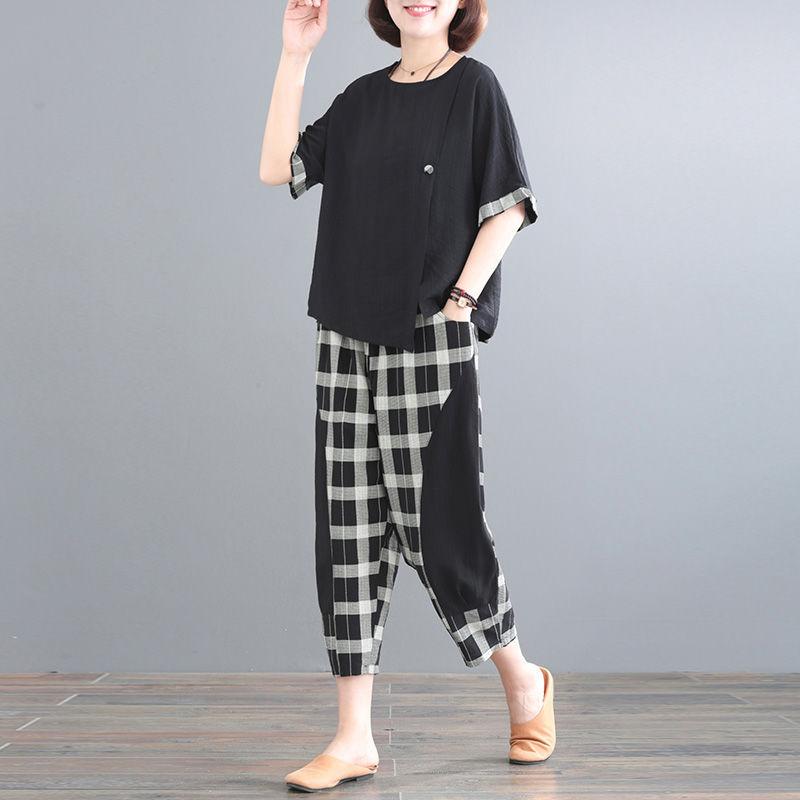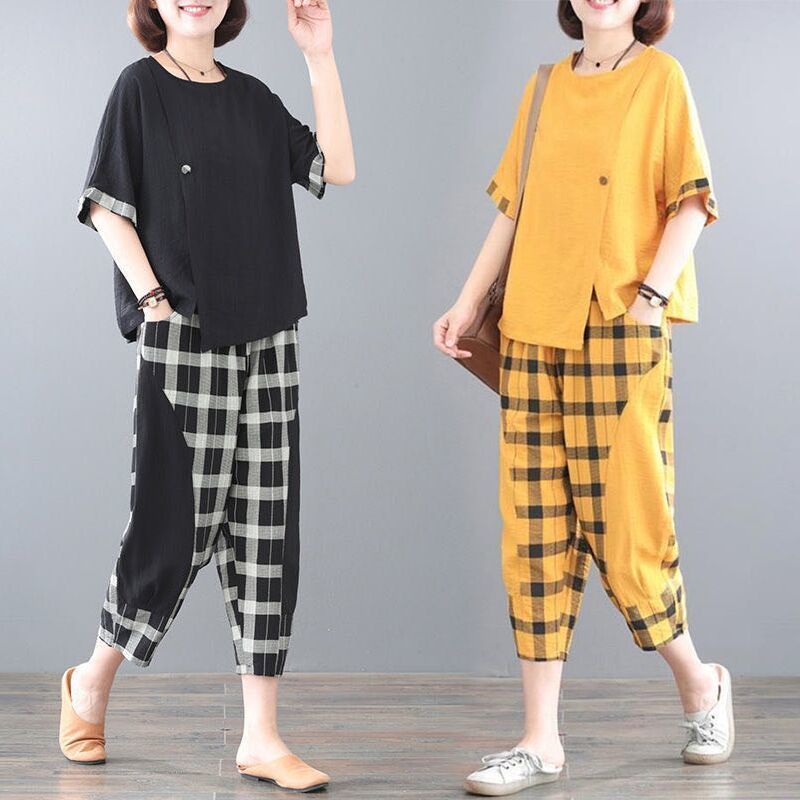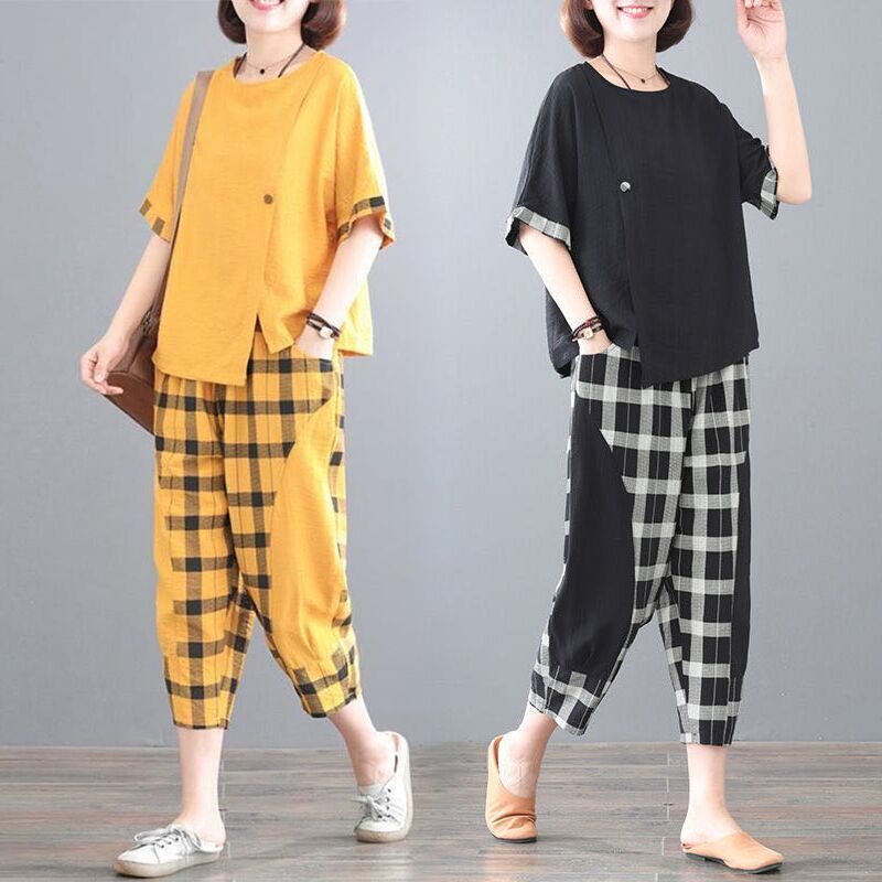 ✨【40-90kg】Îmbrăcăminte nouă pentru femei la modă 2025, ținute casual lejere din două piese, mărimi mari