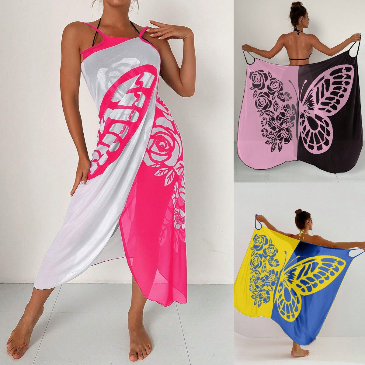 ✨【Produs nou cu reducere】🦋🦋Prelată de plajă cu șifon și protecție solară pentru femei, cu imprimeu fluturi, 2025