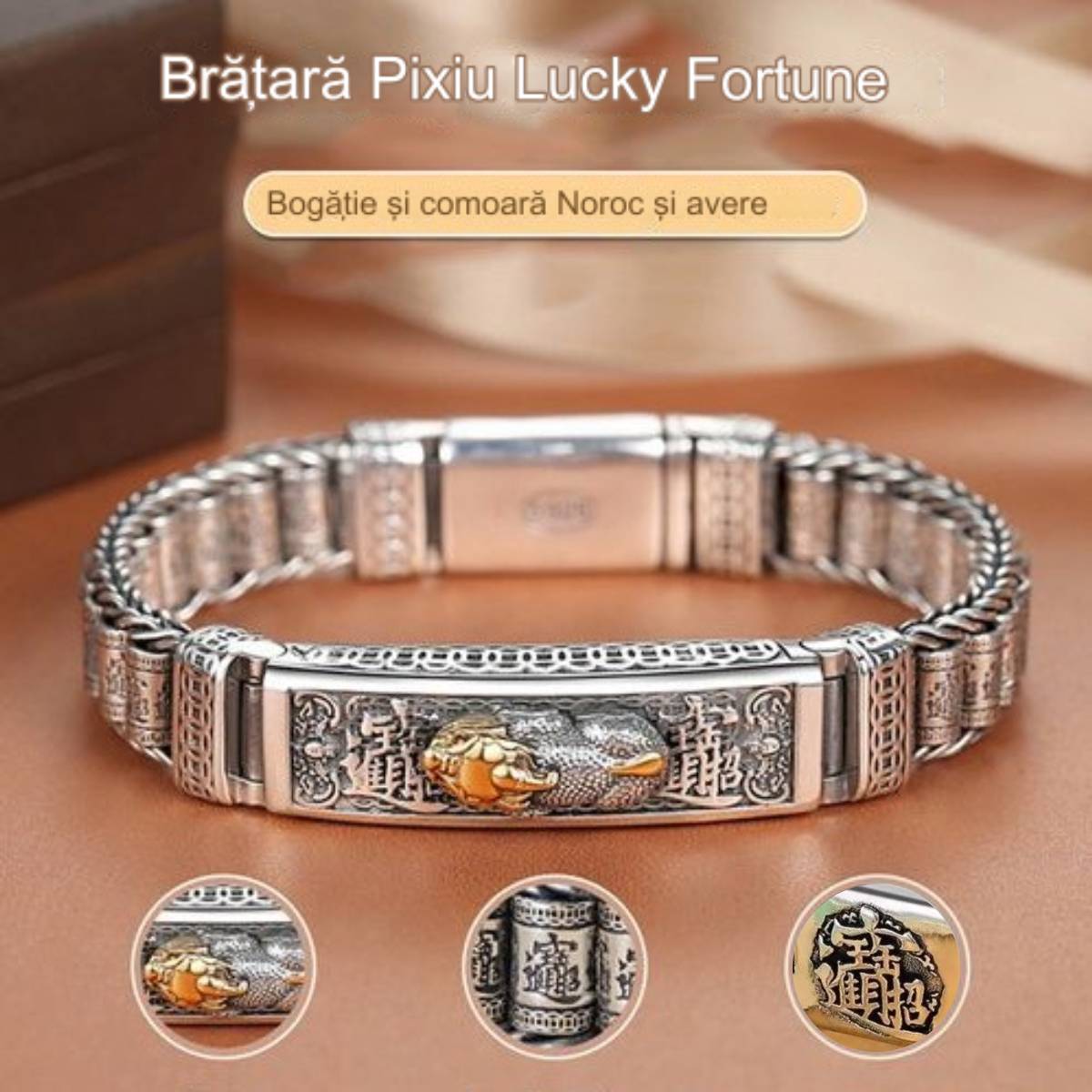 👑 Modă bărbătească | Brățară Pixiu din Argint 925 💎 Amuletă Norocoasă și Elegantă