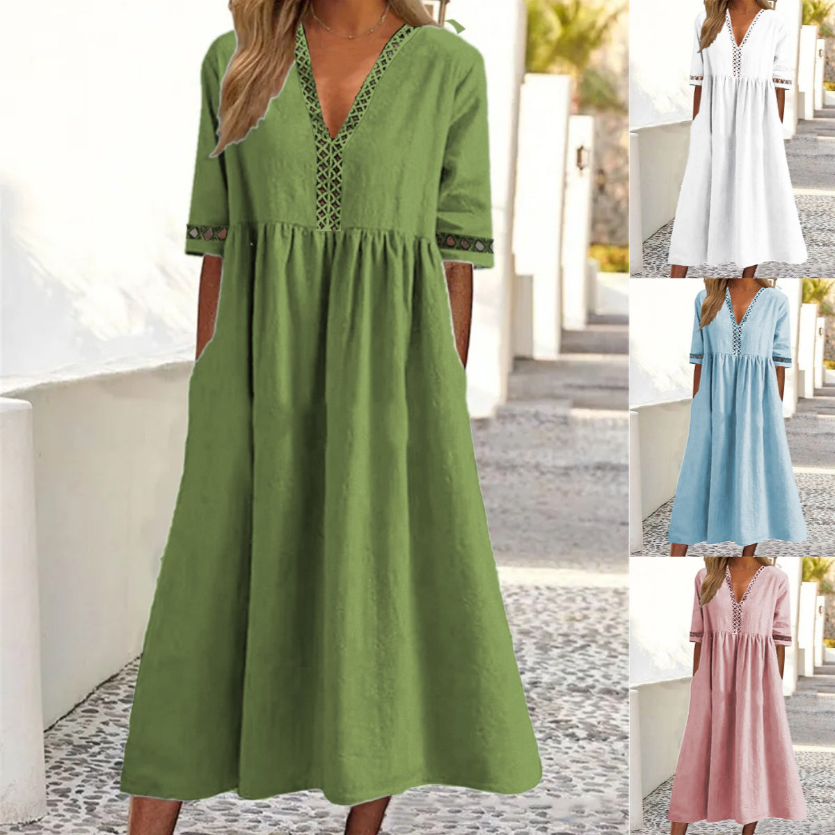 šŸ”„šŸ‘—ć€S-3XL怑Culoare solidă Rochie cu mĆ¢necă scurtă cu gĆ¢t Ć®n V
