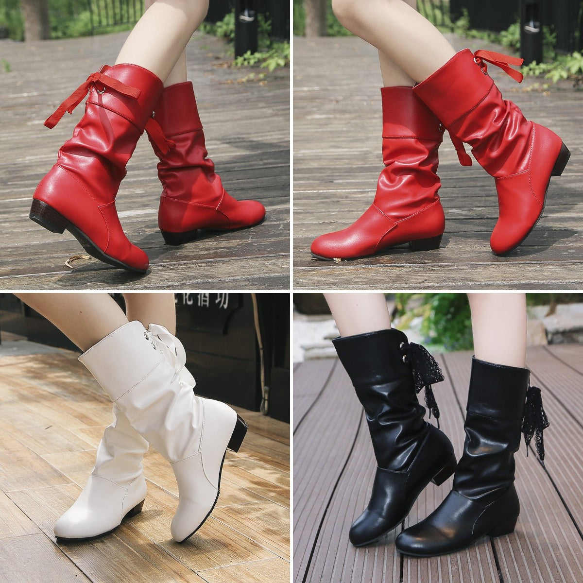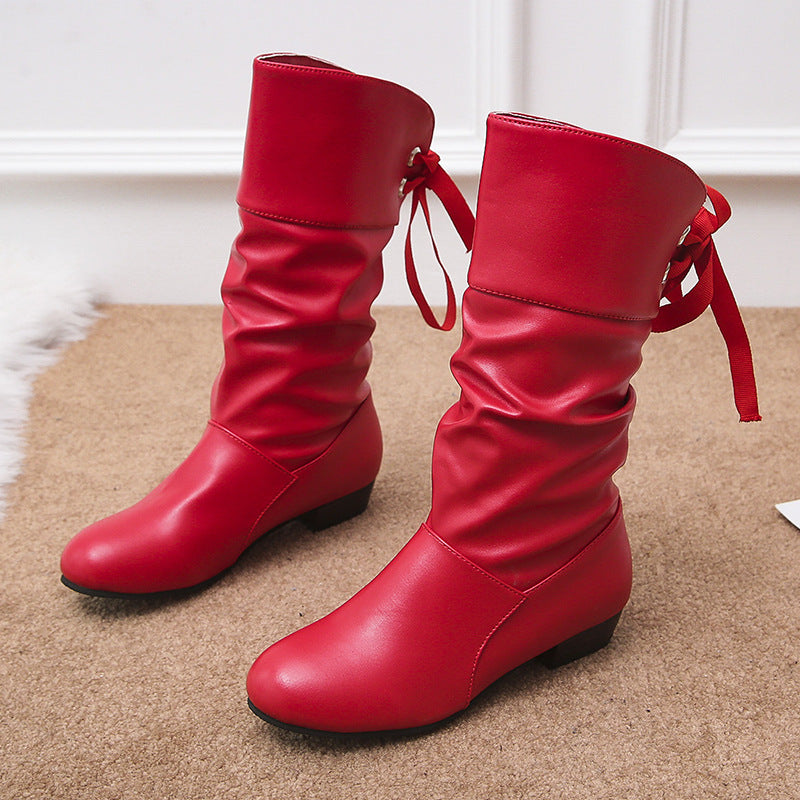 【35-43】2025 jesenski novi modni škornji iz mehkega usnja z vezalkami