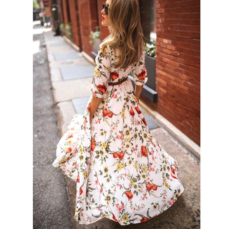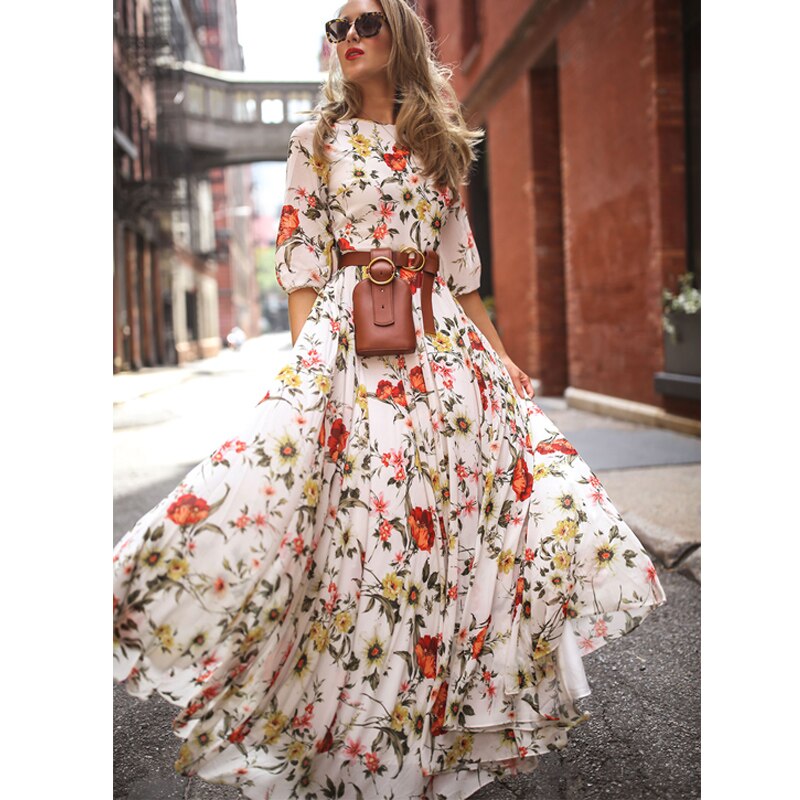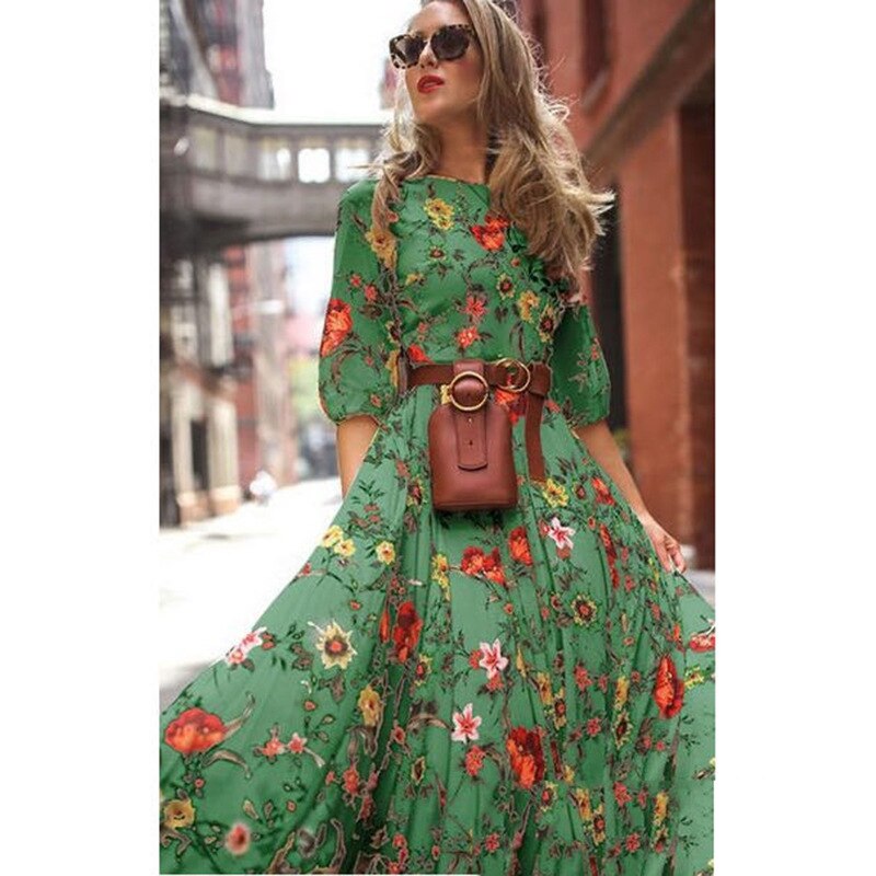 【S-3XL】2026 Modna tiskana visoka rob velika cvetlična obleka iz šifona