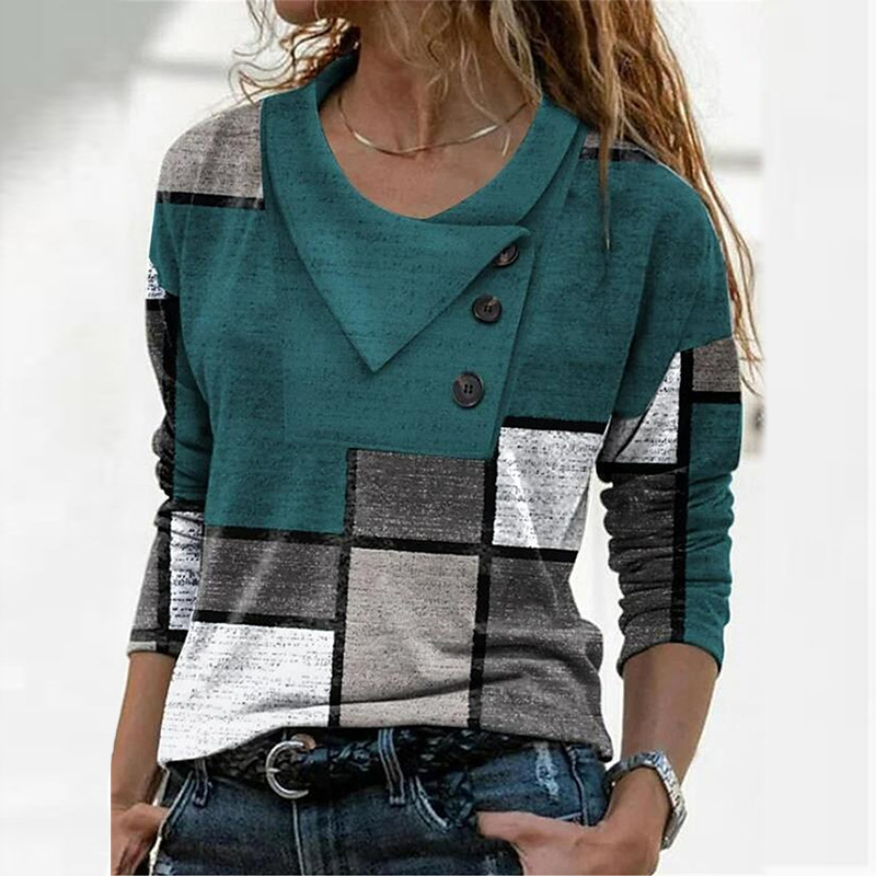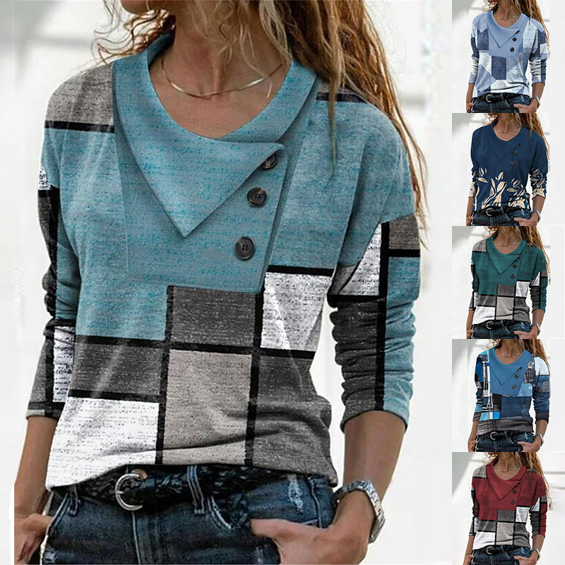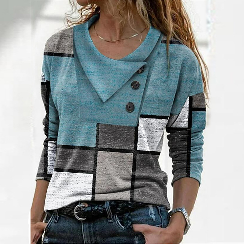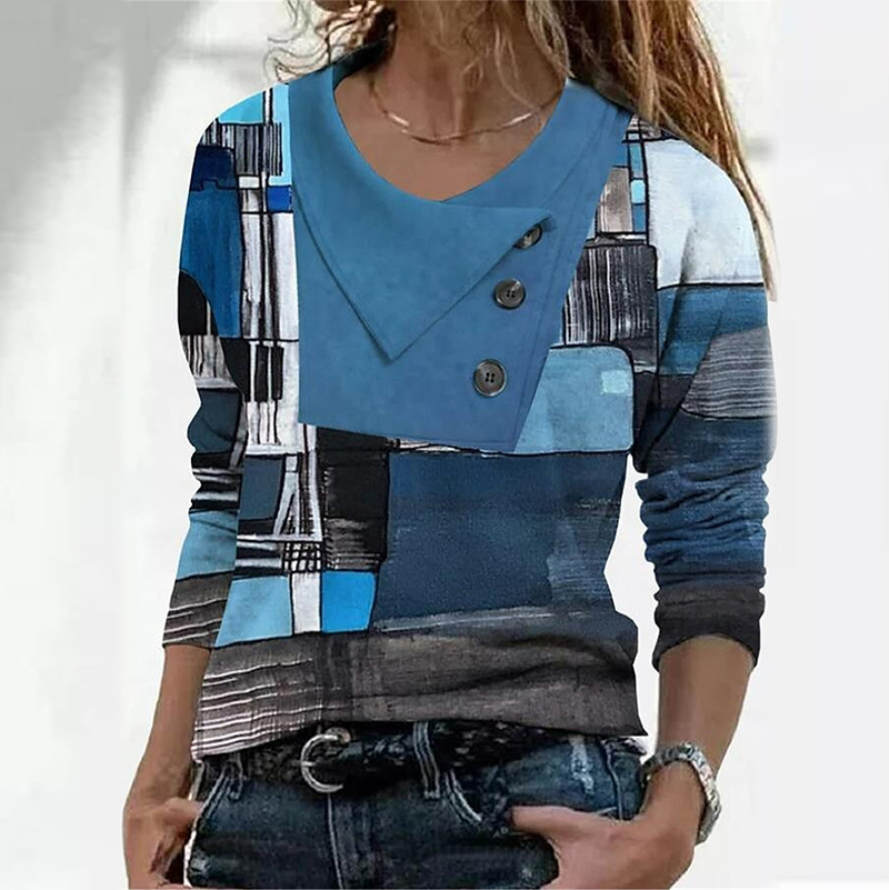 【S-3XL】Modna ženska majica z dolgimi rokavi in geometrijskim potiskom, prekrižanim izrezom
