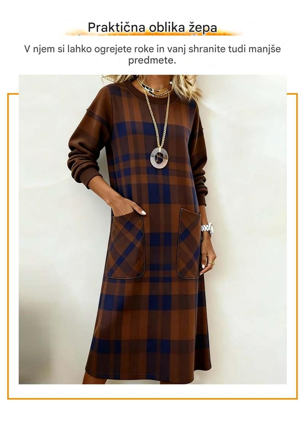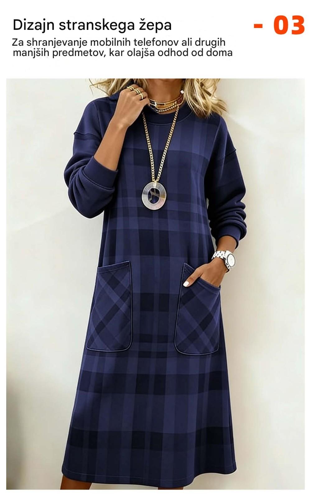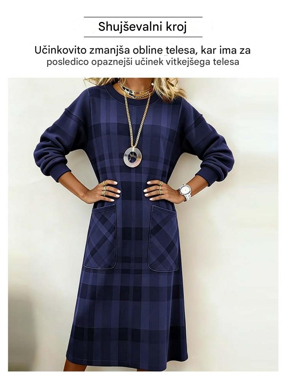 【S-3XL】Sukienka damska w kratę z długim rękawem na jesień i zimę