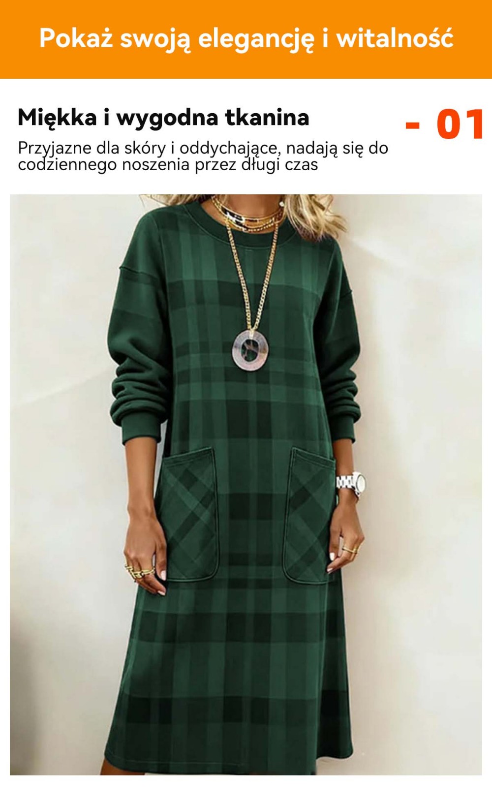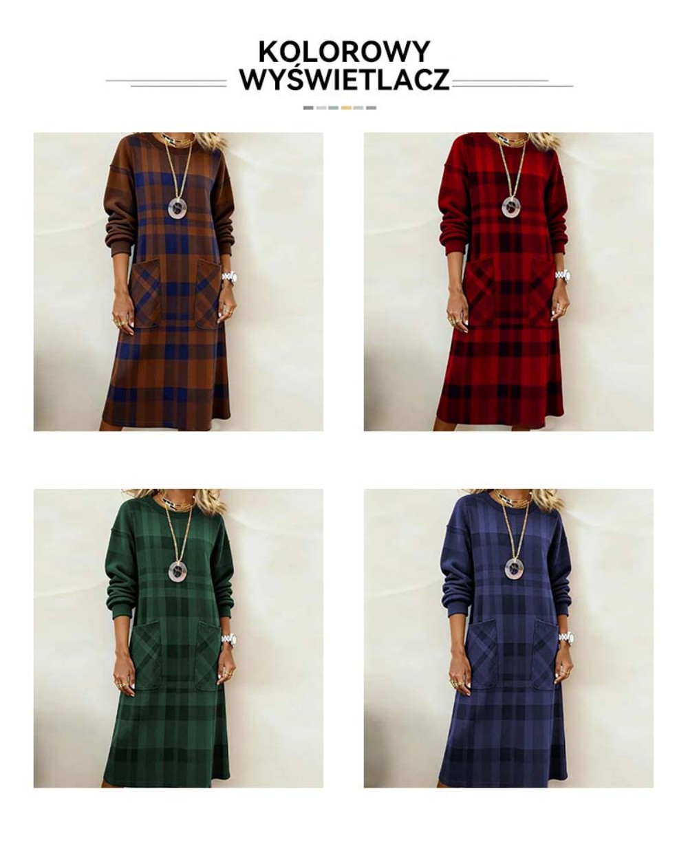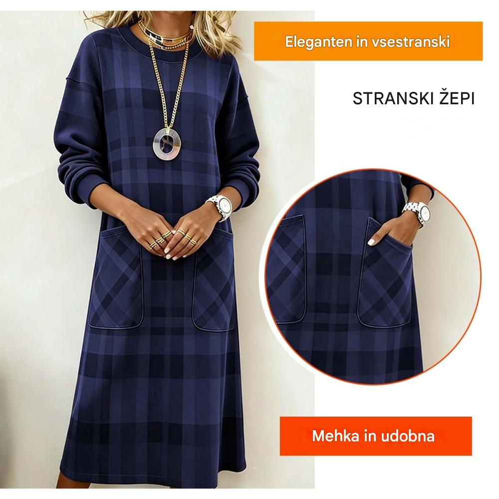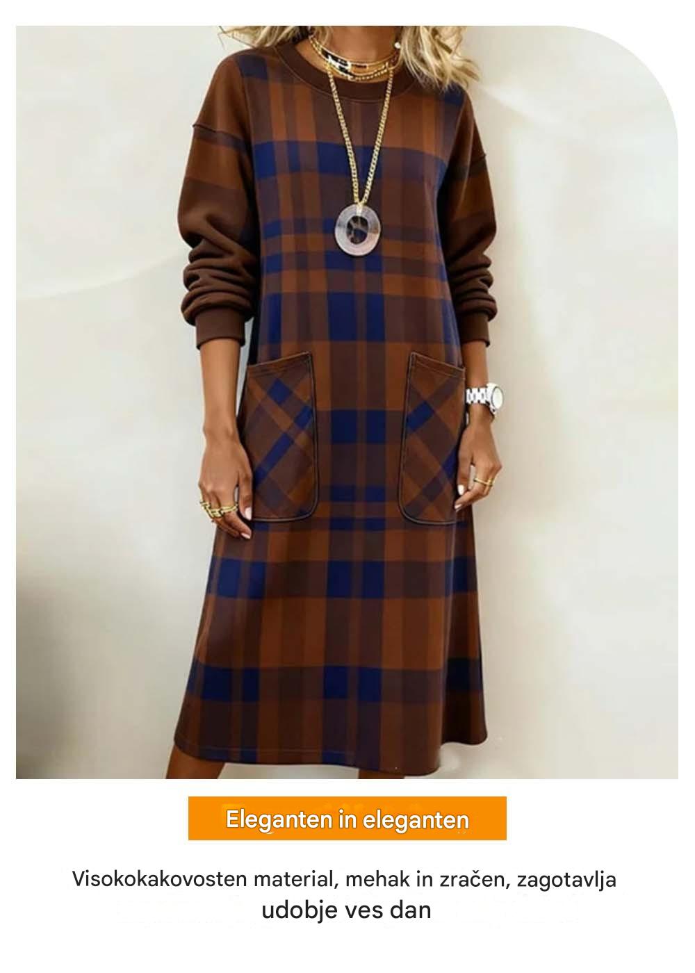 【S-3XL】Sukienka damska w kratę z długim rękawem na jesień i zimę