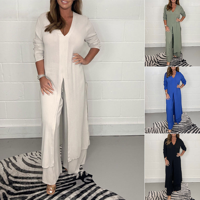 💖Komplet dwuczęściowy z rozcięciem na długi top i spodnie w nowym stylu z 2025 roku