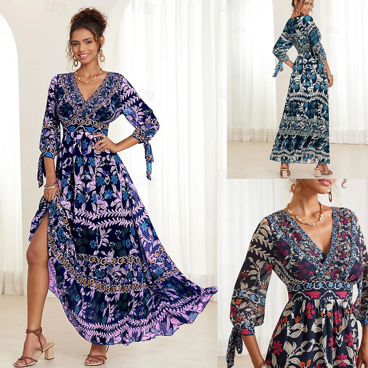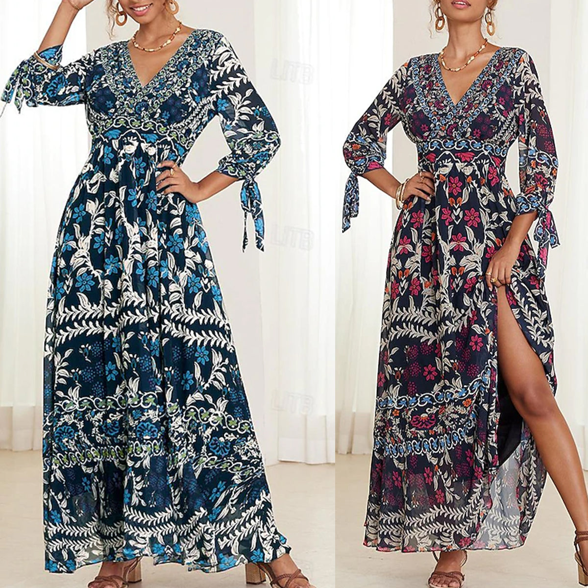 💟【S-5XL】👗2025 Nowa seksowna sukienka z dekoltem w kształcie litery V, z eleganckim nadrukiem