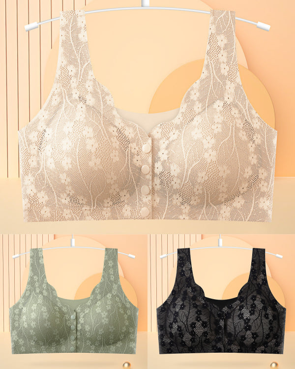 😍【3 sztuk】【40-100KG】Damski, bezprzewodowy, koronkowy biustonosz zapinany z przodu