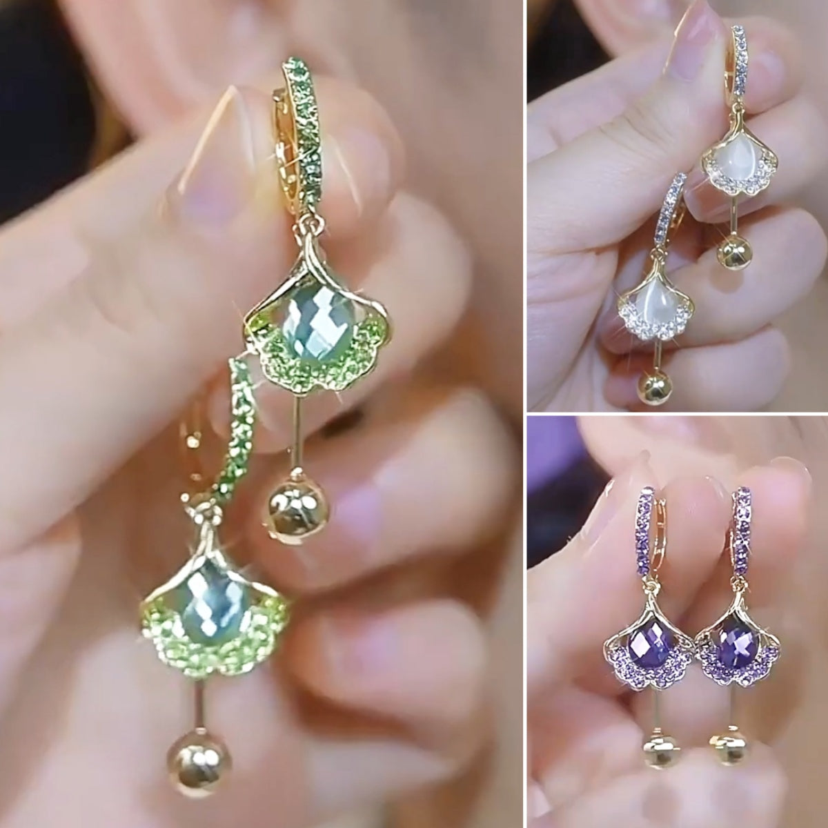 【1 zestaw 3 par】Błyszczące diamentowe kolczyki z liśćmi miłorzębu japońskiego