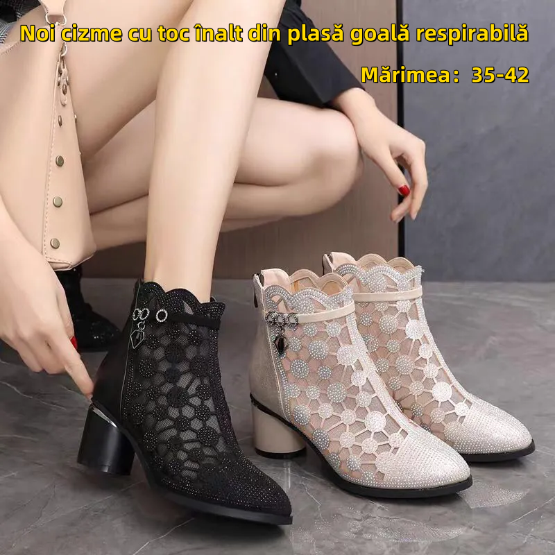 【35-42】Noi cizme cu toc înalt din plasă goală respirabilă