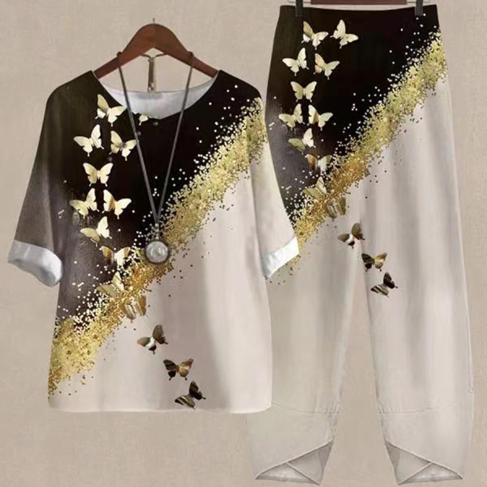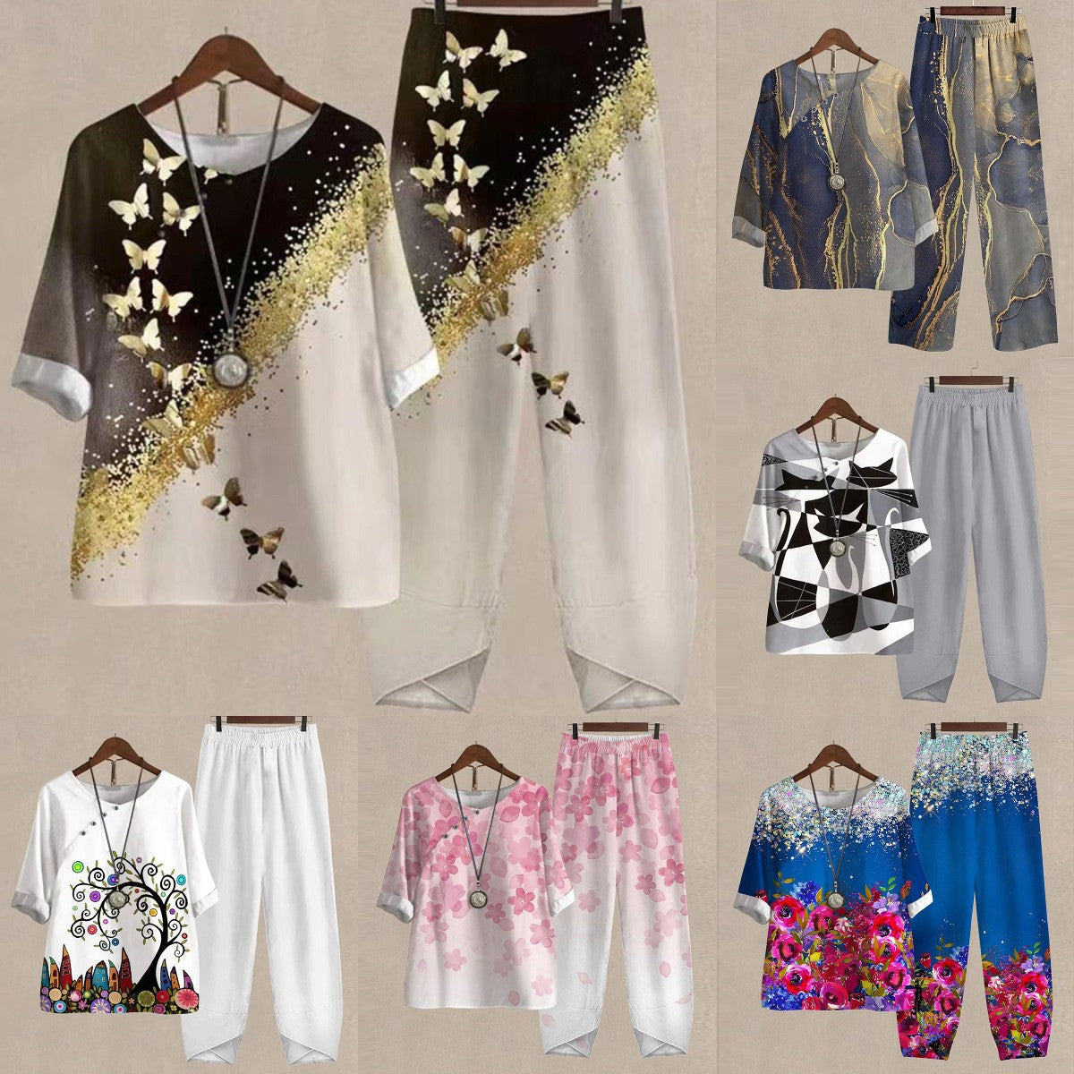 【M-5XL】 Dwuczęściowy zestaw topy i spodni z wiosennym nadrukiem