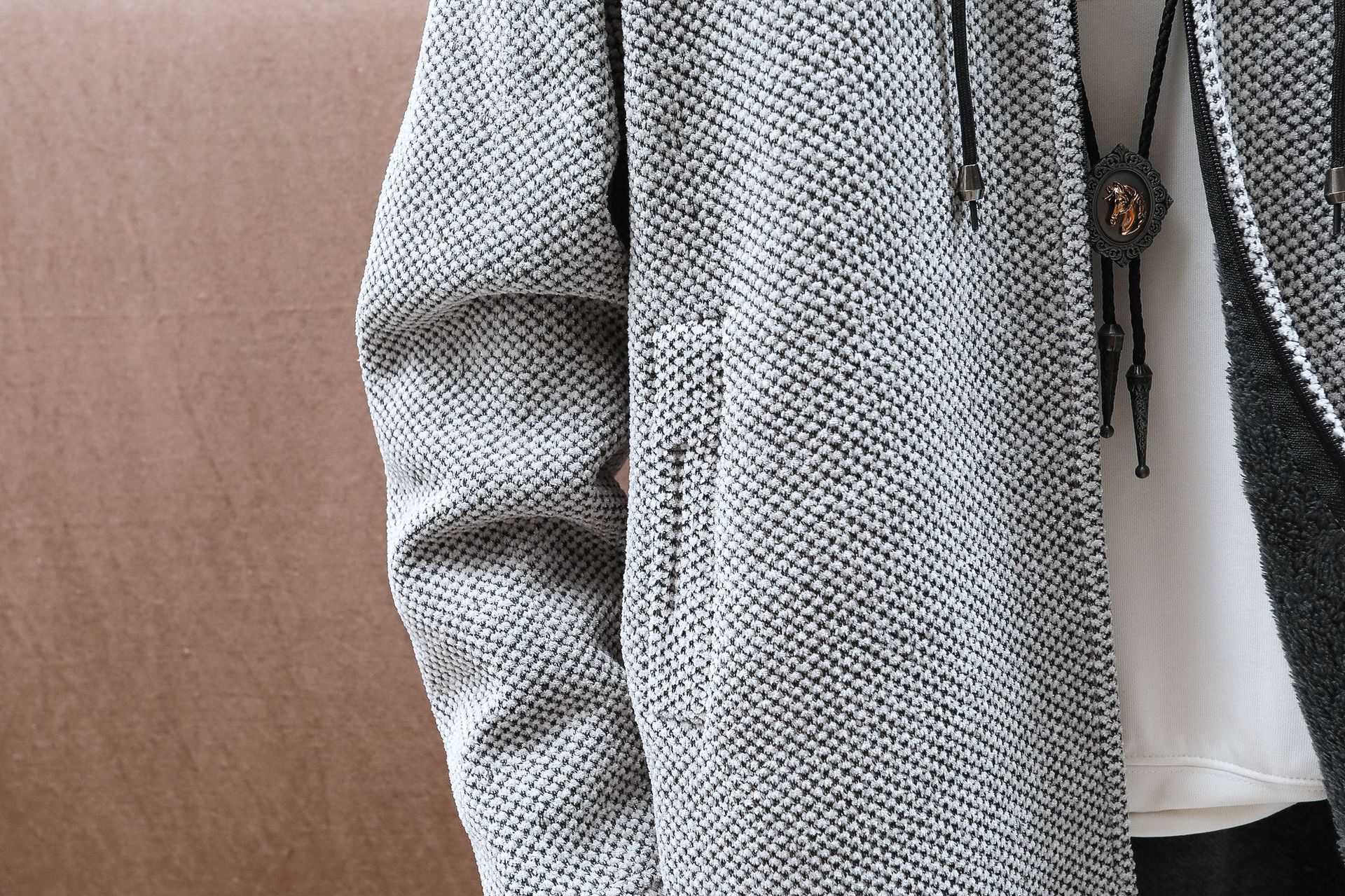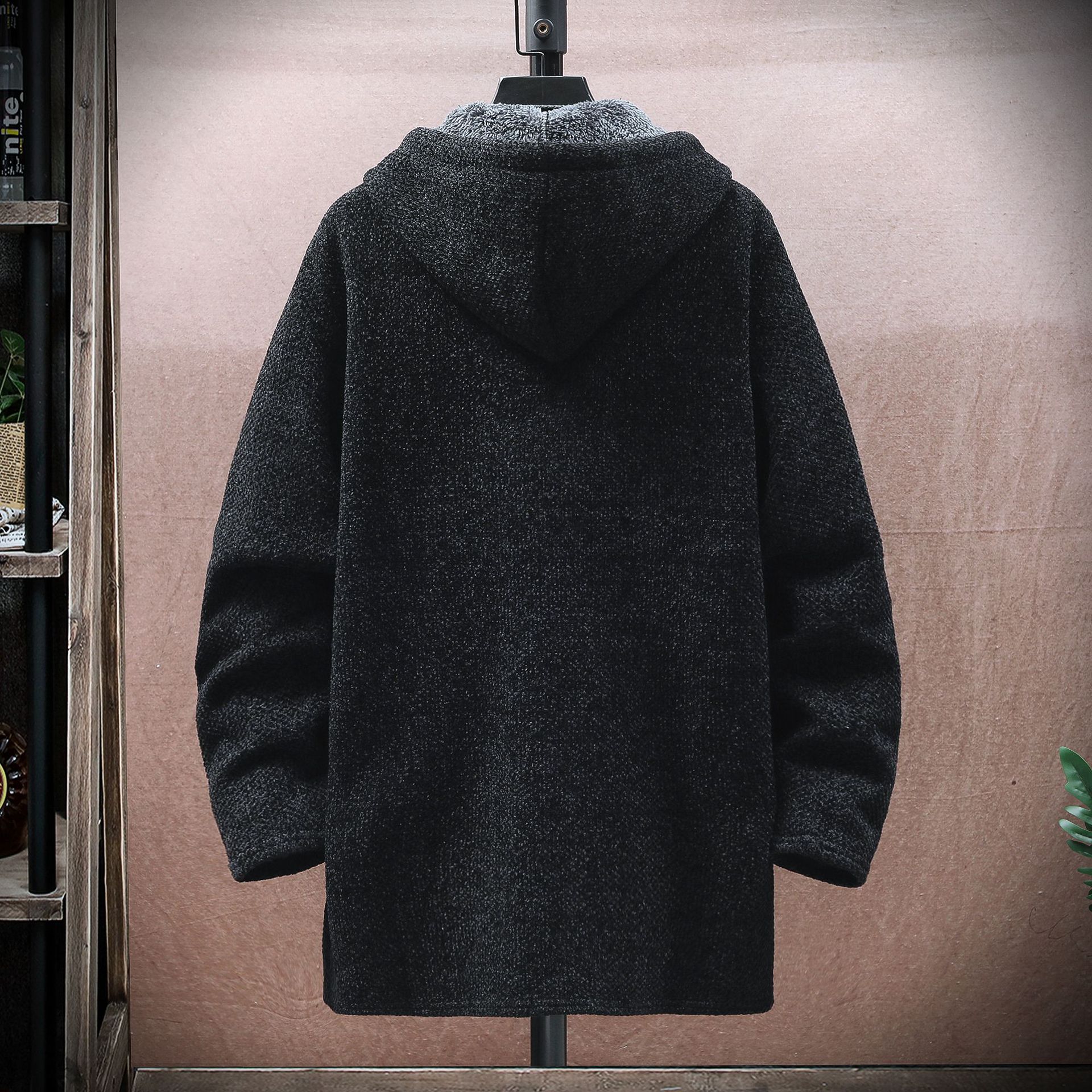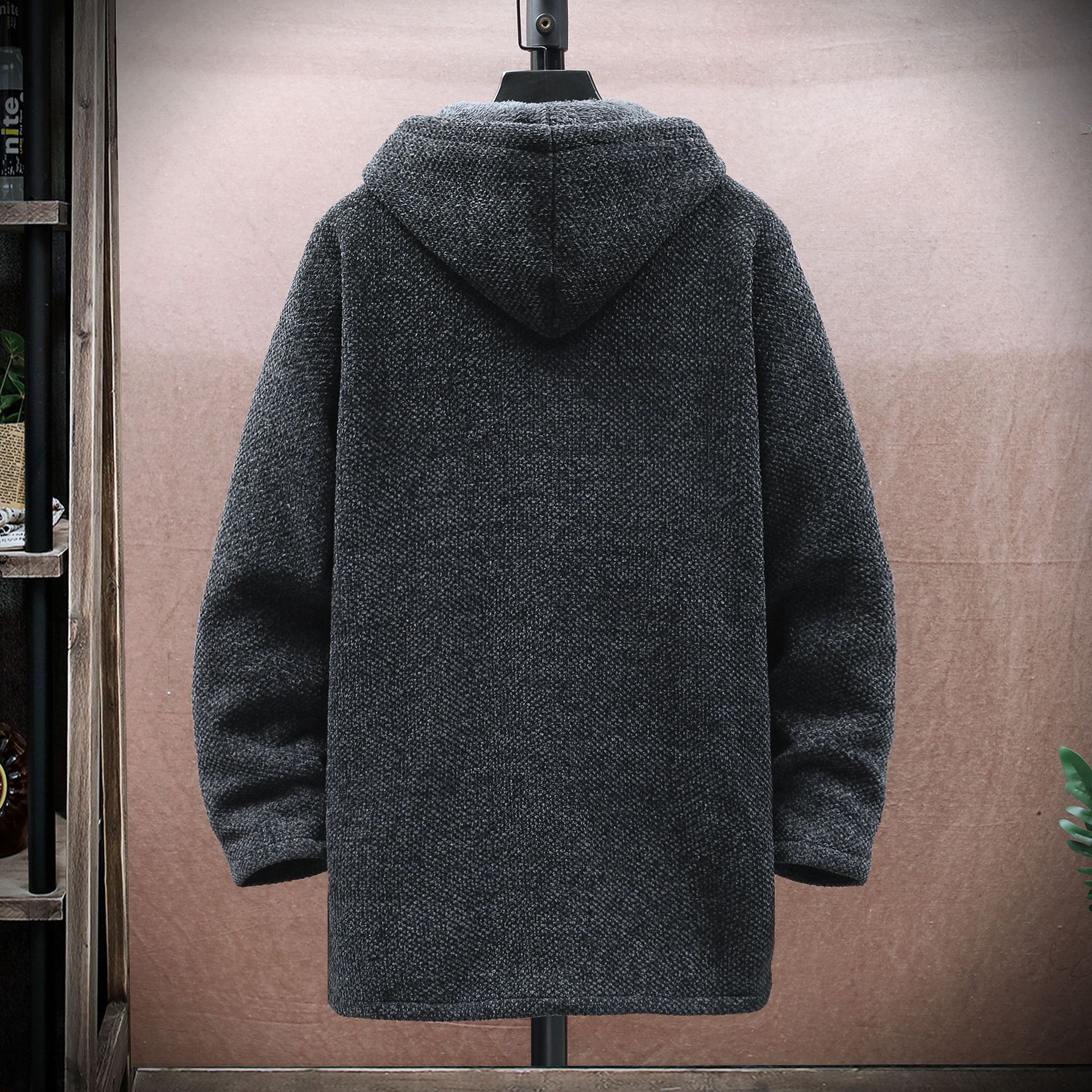 【M-5XL】Męski sweter dzianinowy z kapturem, średniej długości