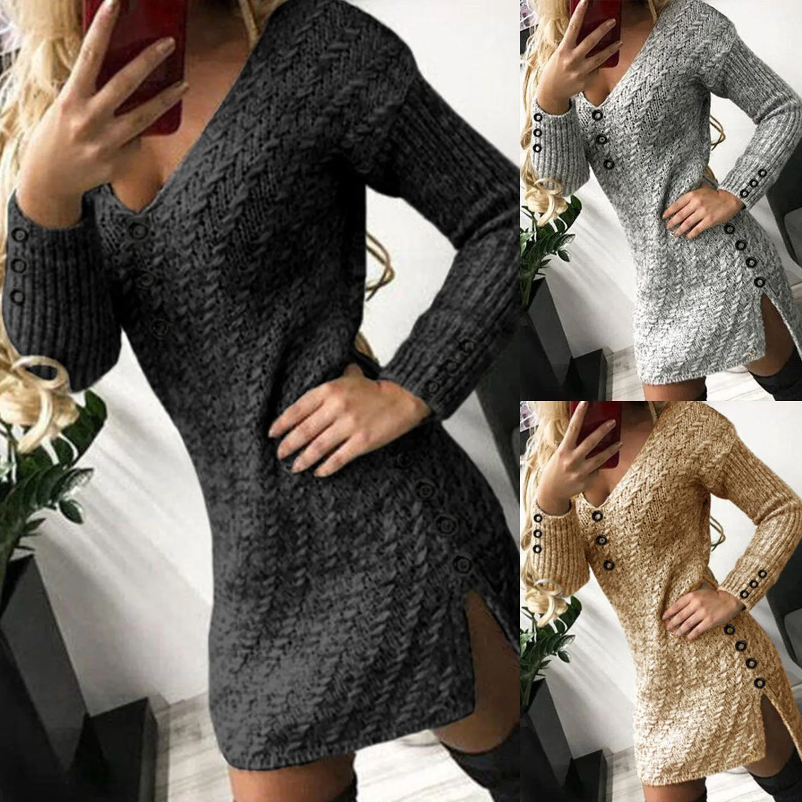 【S-2XL】Nowa modna sukienka z dzianiny z temperamentem na jesień i zimę