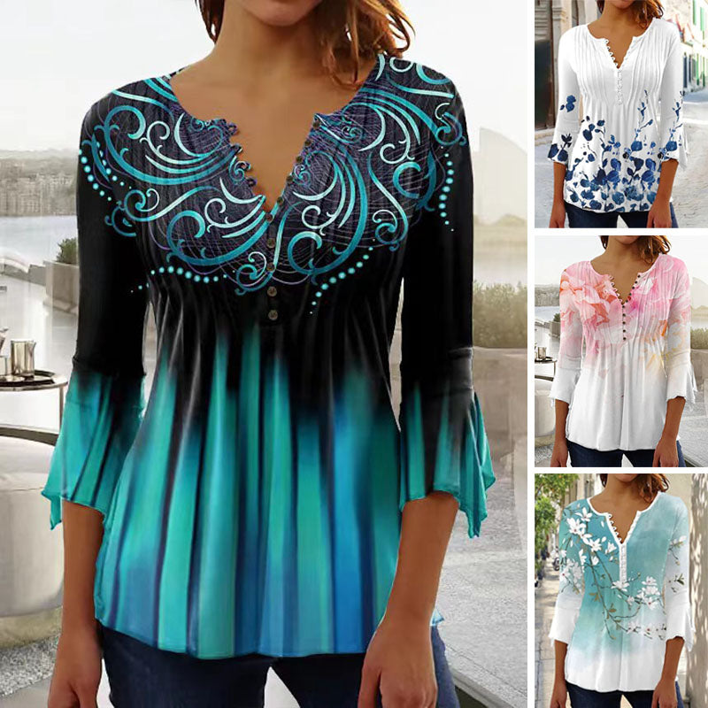 【S-5XL】2025 gorąca sprzedaż nowe panie moda drukowany długi rękaw topy