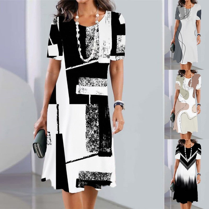 ✨👗【XS-5XL】2025 nova plus size ženska haljina s printom i okruglim izrezom, ležerna i prozračna.