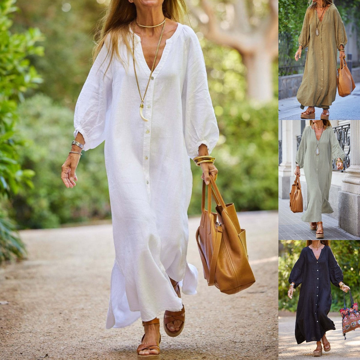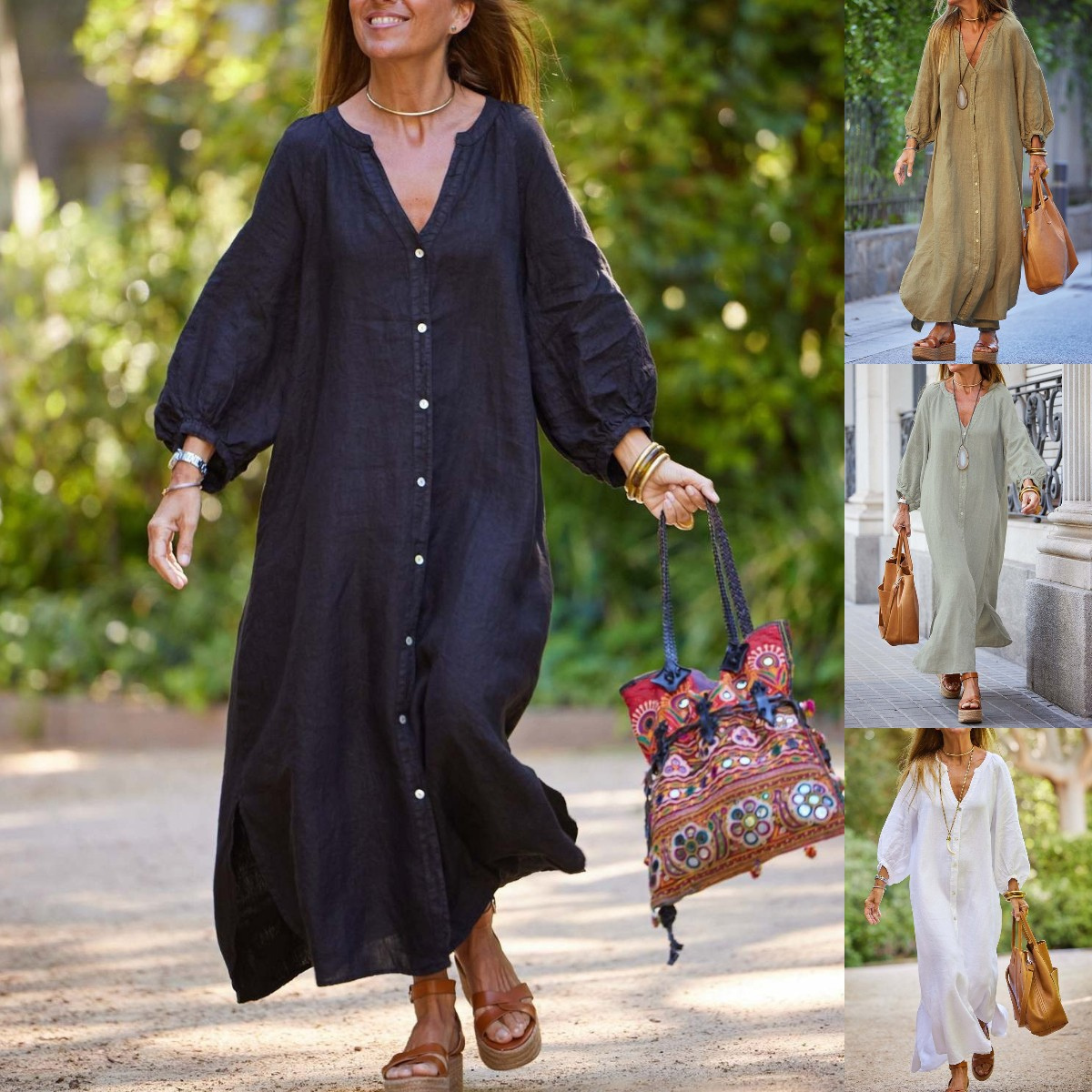 šOgraniÄeno vrijeme 50% popustaš [Sā3XL] Nova ženska duga haljina-koÅ”ulja s V-izrezom, prirodni materijal od pamuka i lana, veÄa veliÄina