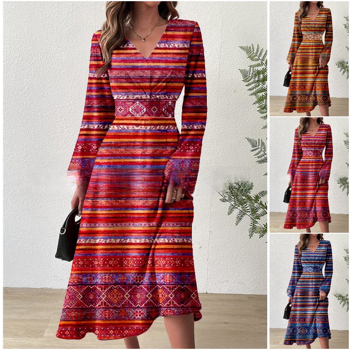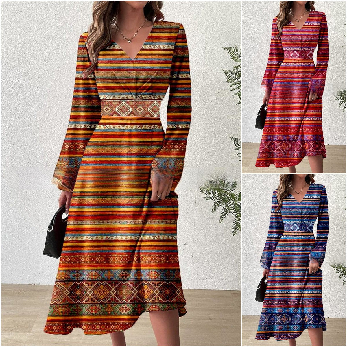 š„Jesensko novoš„[S-3XL] Haljina s prugastim printom i V-izrezom koja okružuje struk