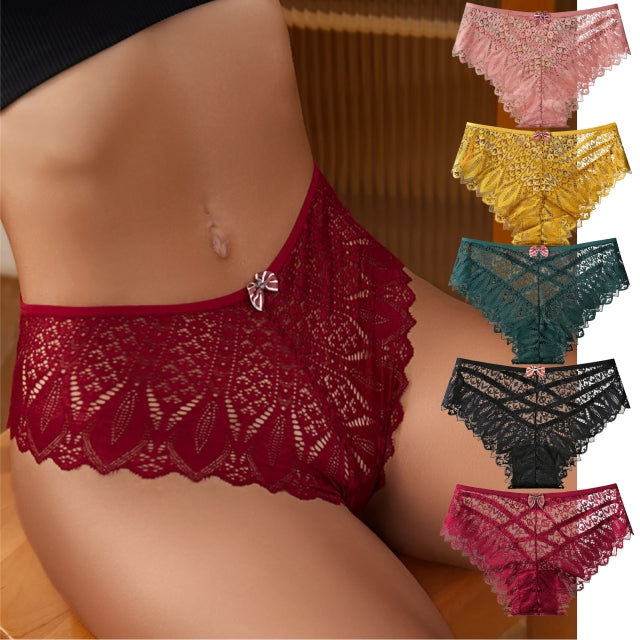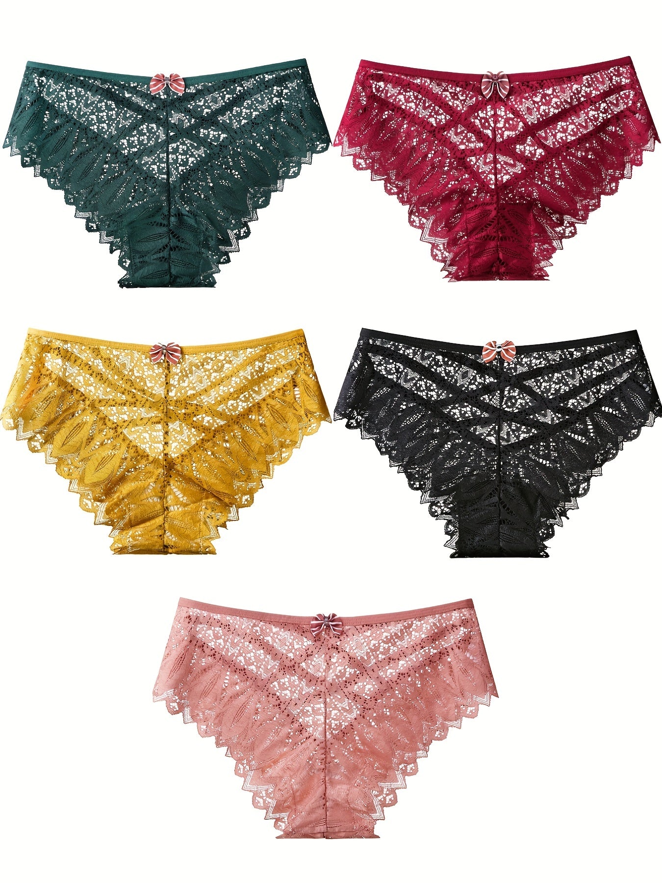 【5 komada】 Žensko donje rublje na vezanje na čipku s cvjetnim motivima - donje rublje s križnim izrezima