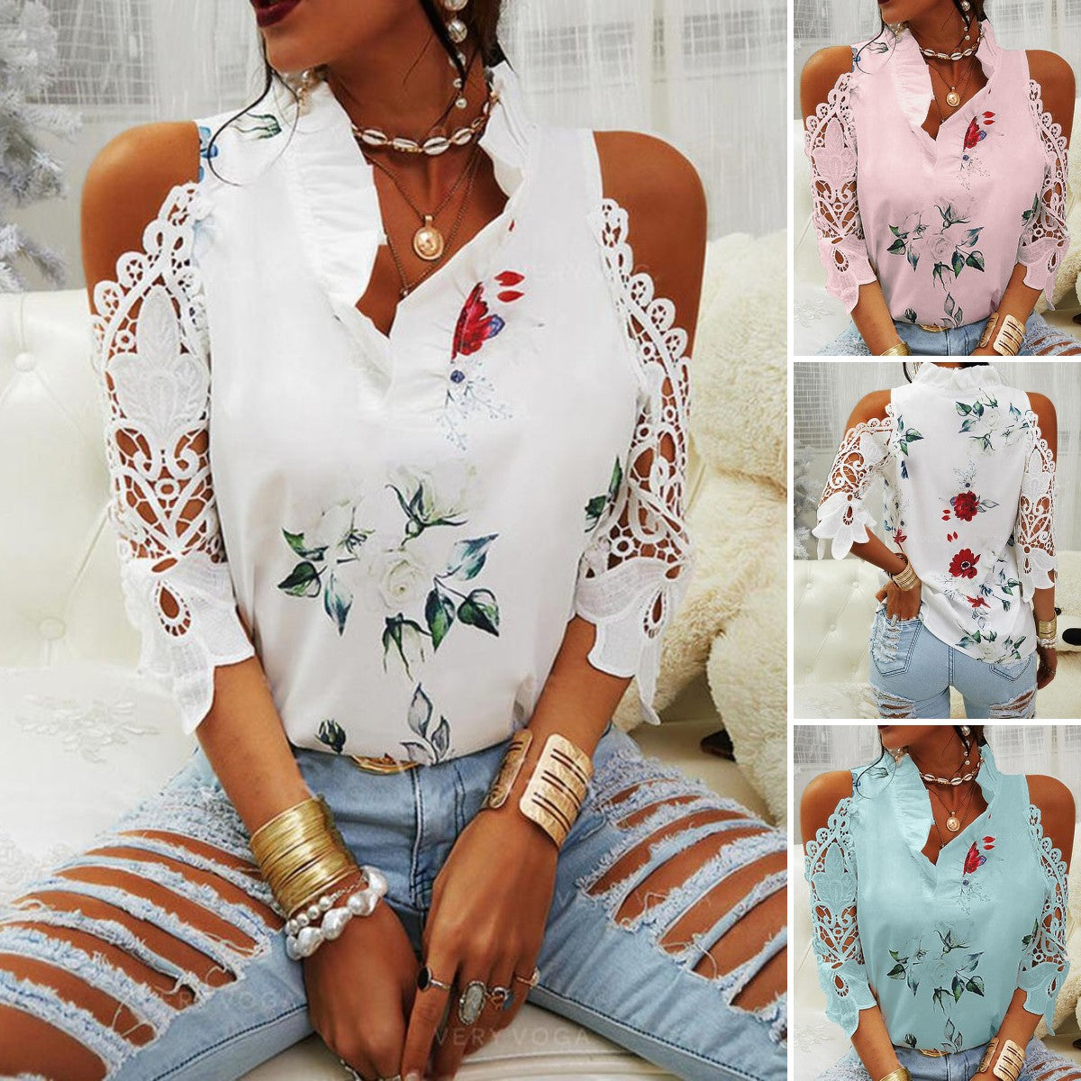 【Kupite jedan, dobivate jedan besplatno】【S-5XL】2024. Nova ženska majica kratkih rukava s otvorenim ramenima sa spajanjem čipke iz