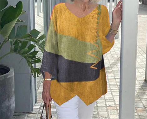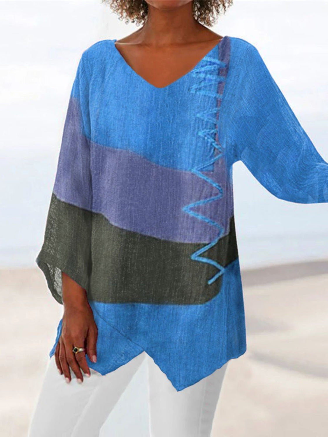 【S-4XL】Nova ležerna majica dugih rukava s nepravilnim rubom s umjetničkim printom i V-izrezom