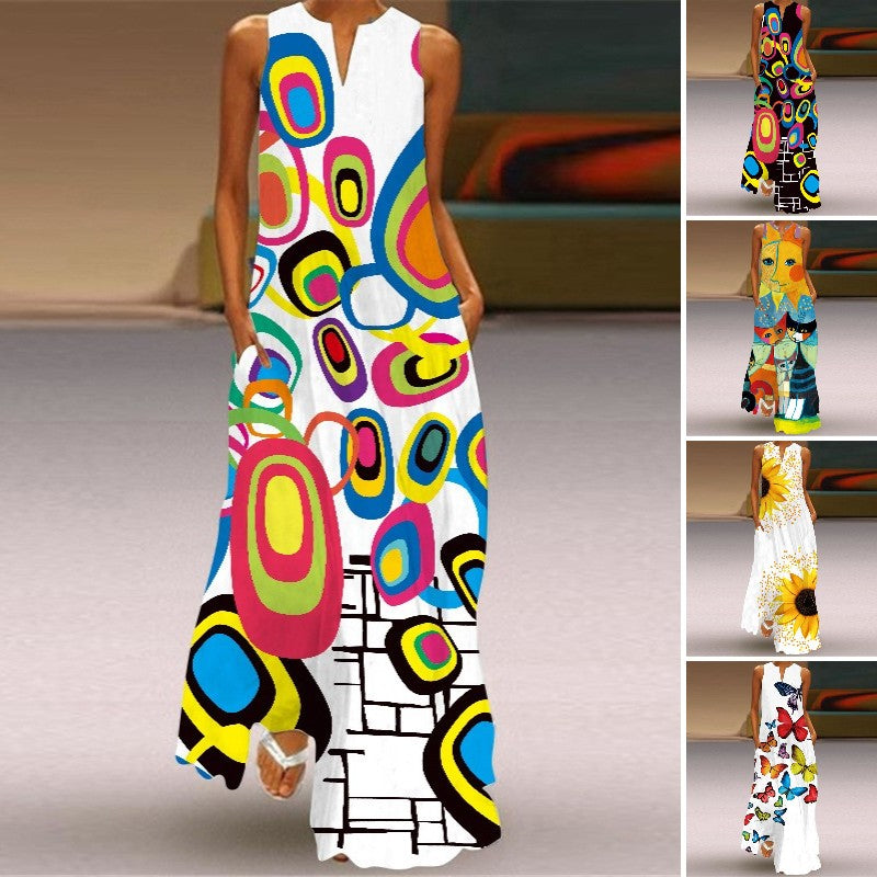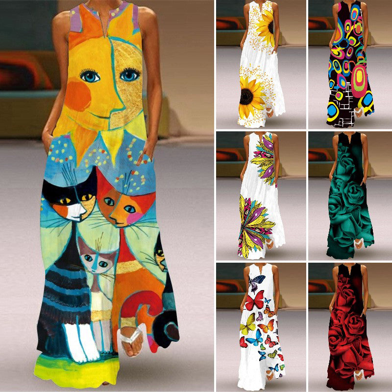 【S-5XL】2025 Seksi haljina bez rukava s V-izrezom i printom