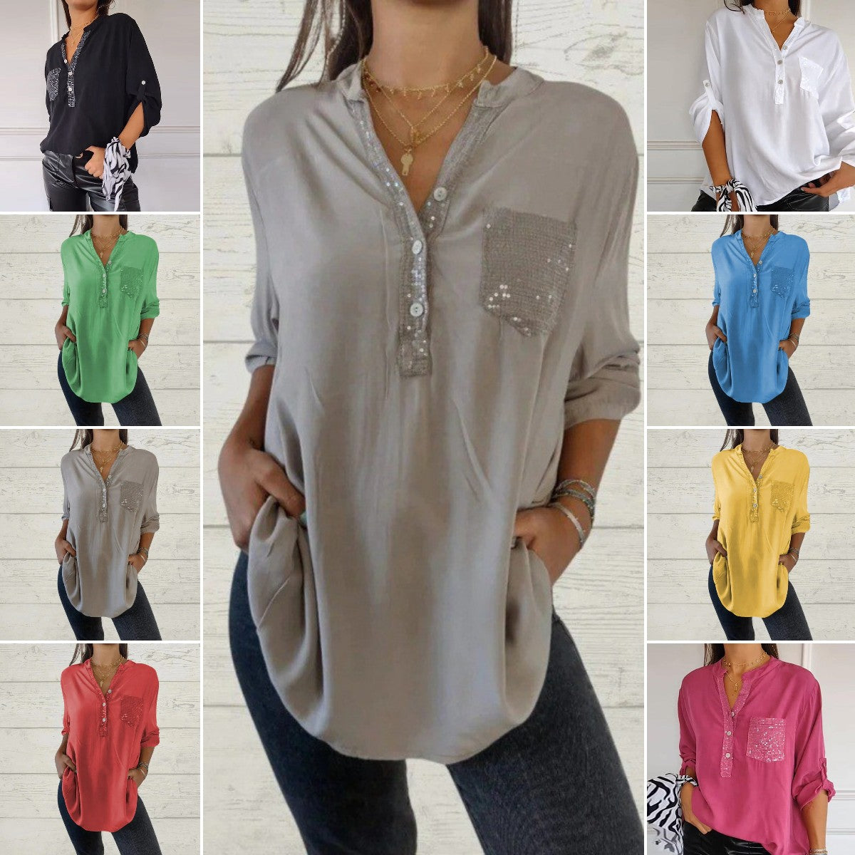 🔥🏆【S-5XL】 2025 Cămașă casual cu decolteu în V, de culoare uni