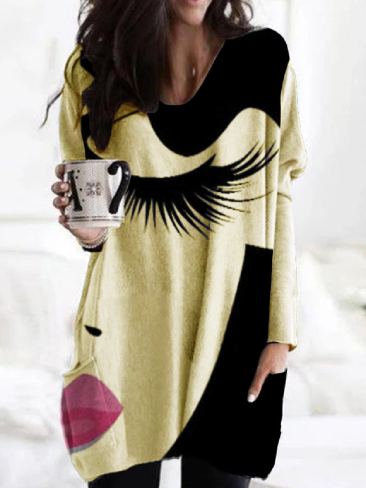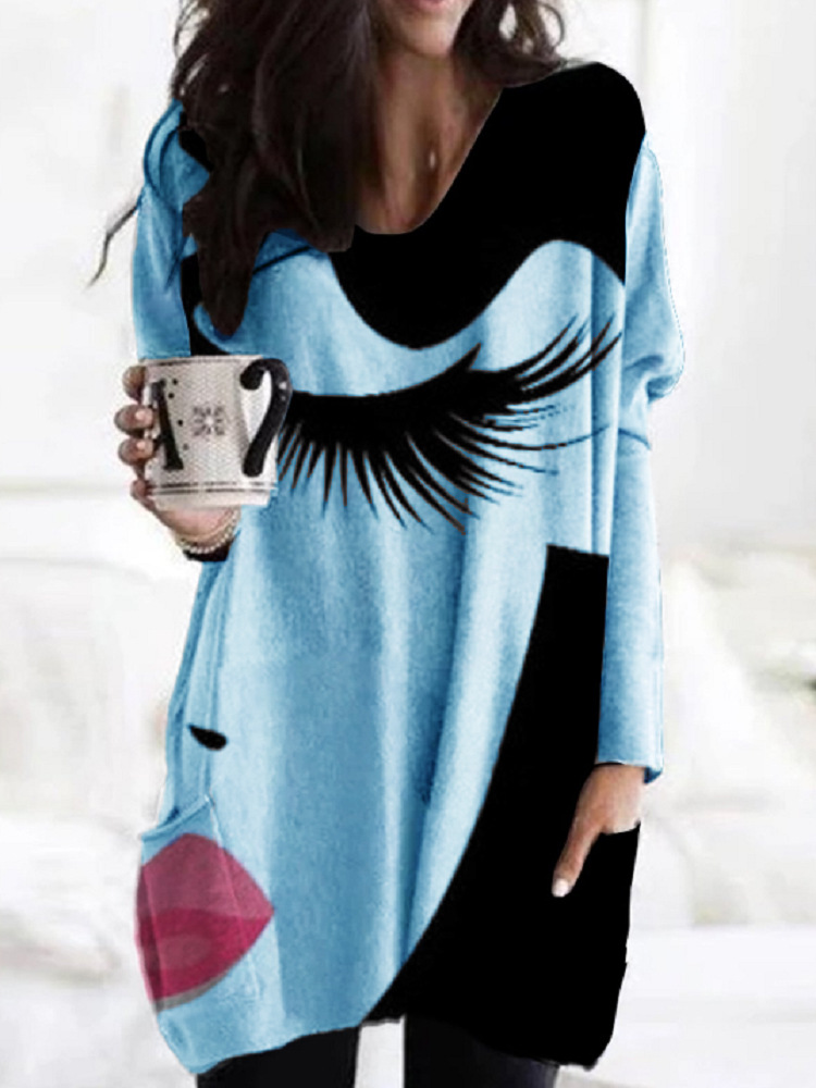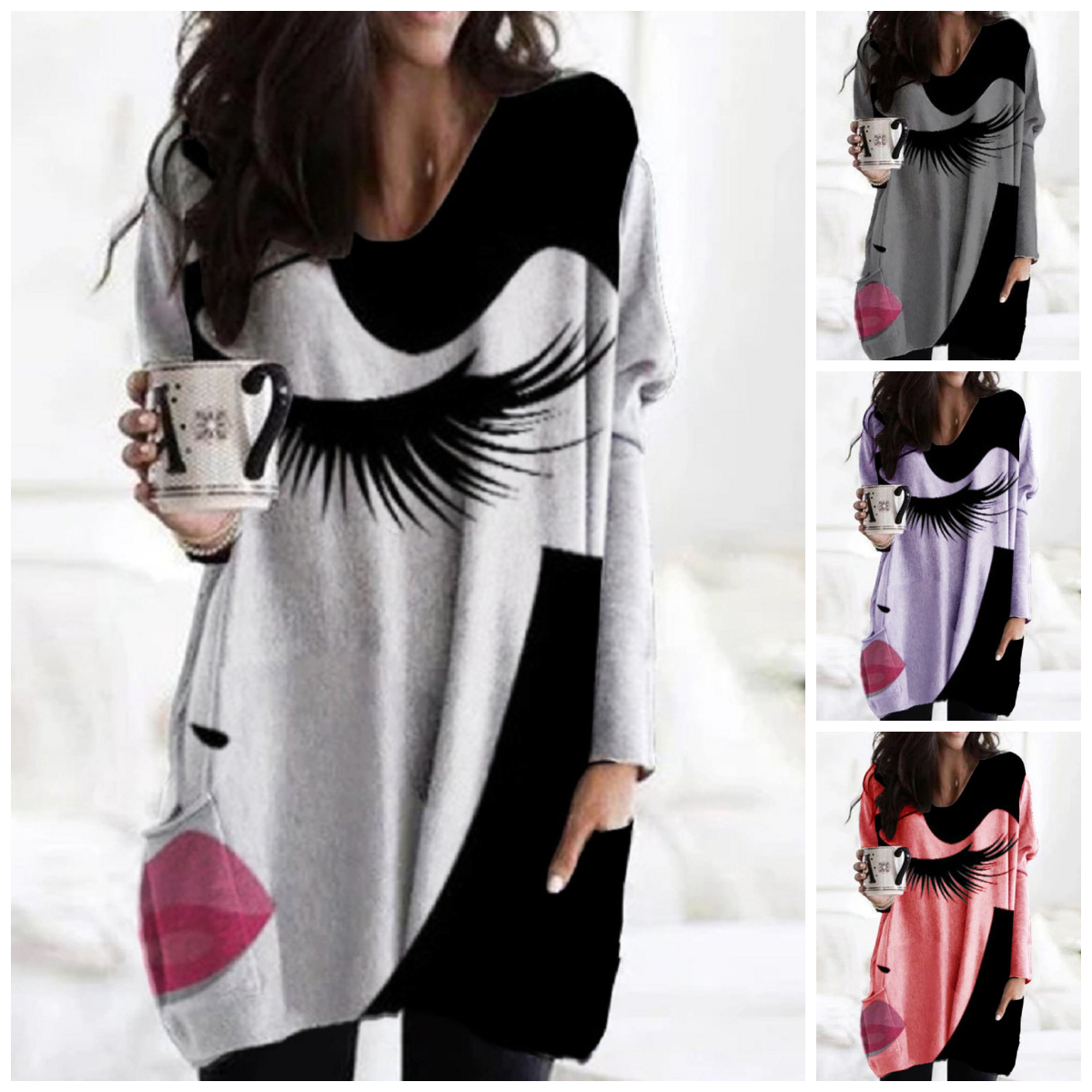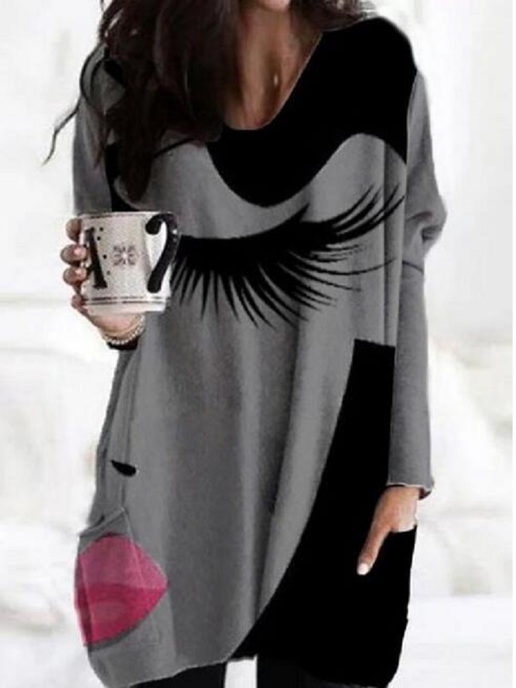 💖Elegantna, ohlapna, podaljšana majica z dolgimi rokavi, potiskom in V-izrezom ter nepravilnim robom