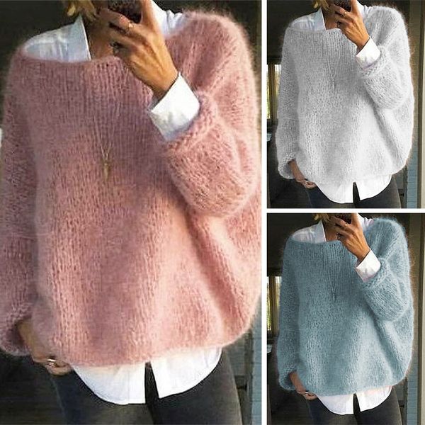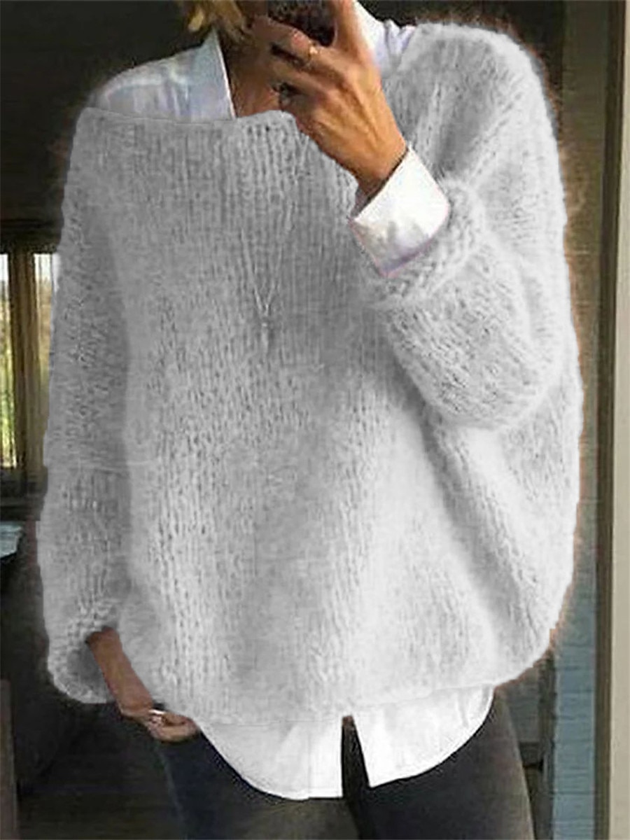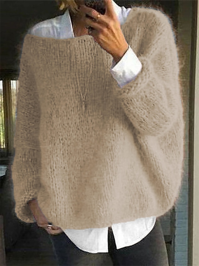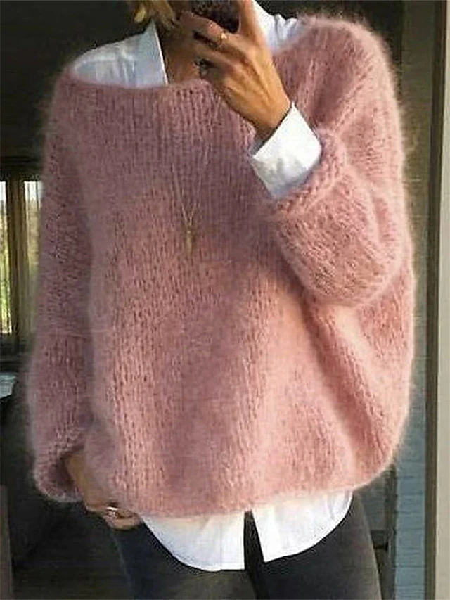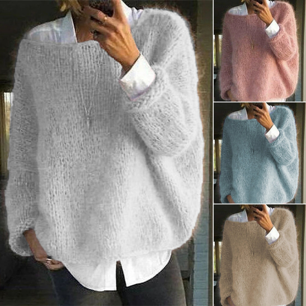 (50-85 kg) Nov ohlapen enobarvni ženski pulover za jesen in zimo